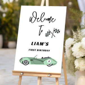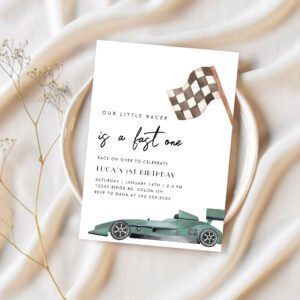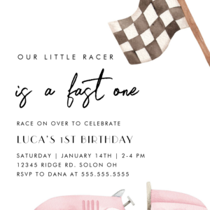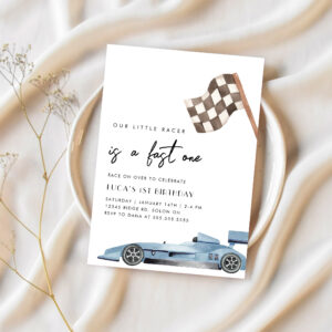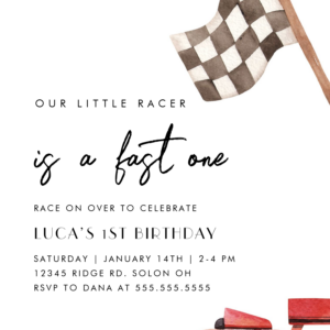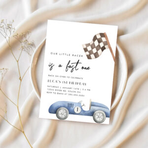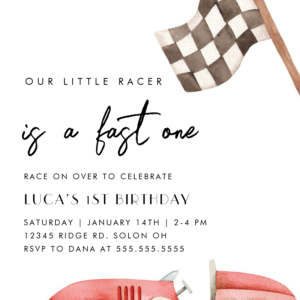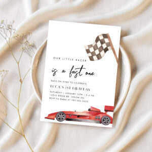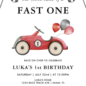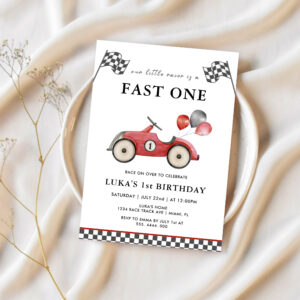 Fast One Red Race Car Boys 1st Birthday Invitation