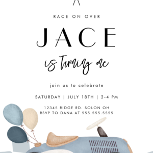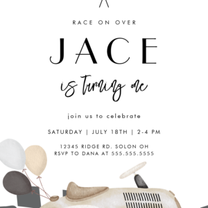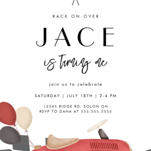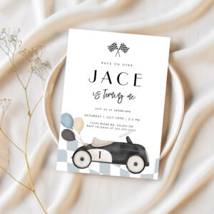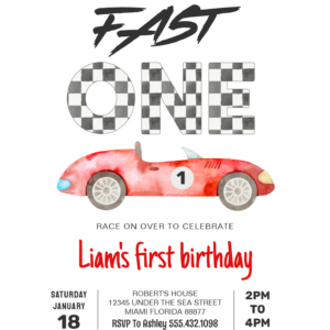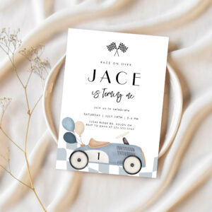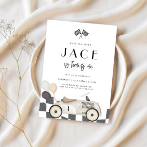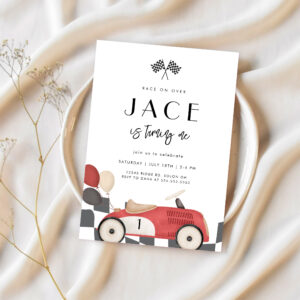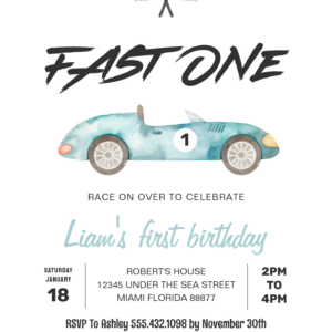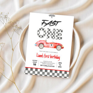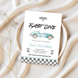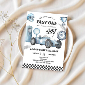 Fast One Two Fast Vintage Cream Race Car Birthday Invitation