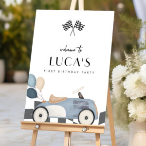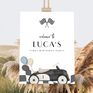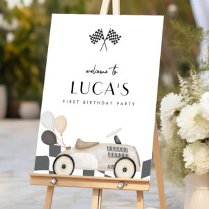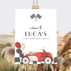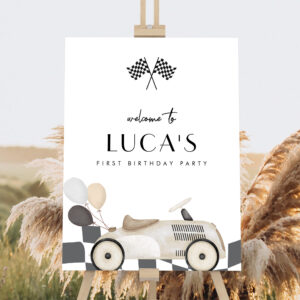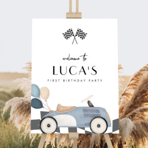 Fast One Two Fast Vintage Race Car Welcome Sign