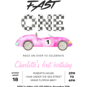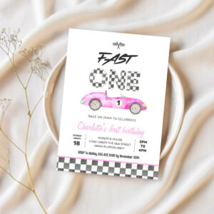 Fast One Vintage Pink Race Car 1st Birthday Invitation