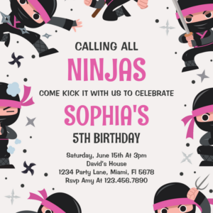 Girl Ninja Warrior Pink Martial Art Birthday Party Invitation