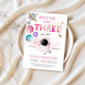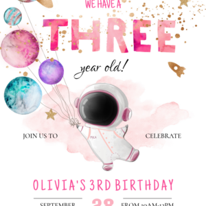 Girl Pink Astronaut Outer Space Balloons Birthday Invitation