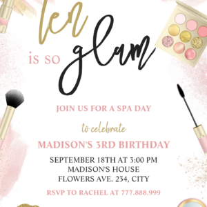Glam Party Girl Makeup Spa 10th Birthday Party Invitation