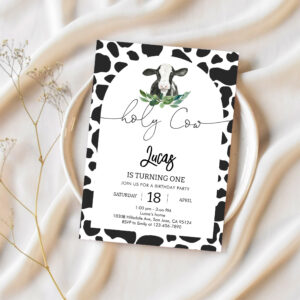 Holy Cow Im One Cow 1st Boy Farm Birthday Invitation