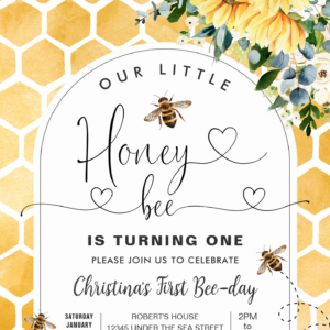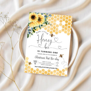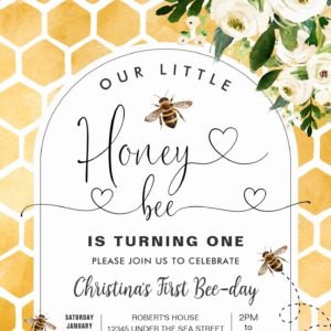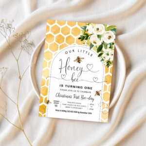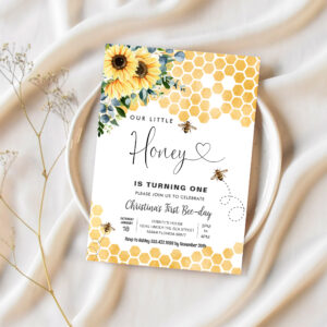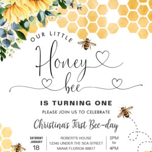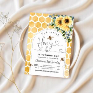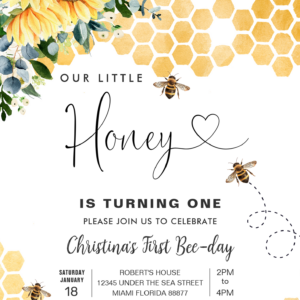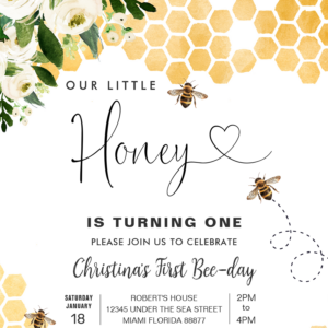 Honey Bee 1st Bee Party Birthday Invitation