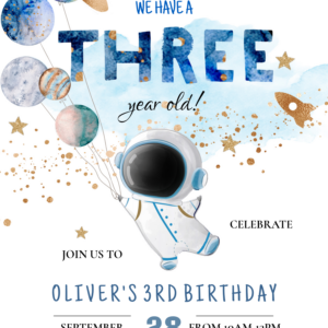 Houston We Have A Three Year Old Space Birthday Invitation