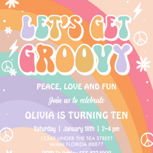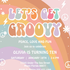 Lets Get Groovy Rainbow Hippie Retro Birthday Invitation