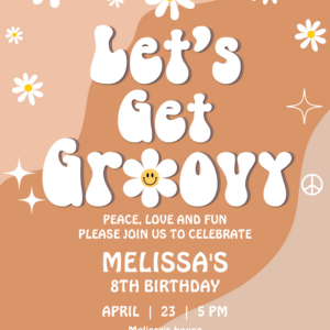 Lets Get Groovy Groovy Hippie Retro 70S Birthday Invitation