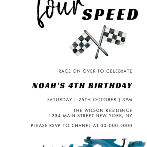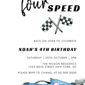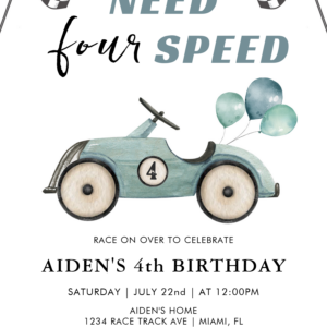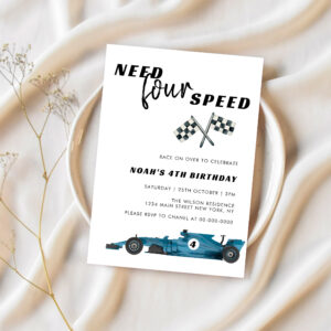 Need Four Speed Blue Race Car 4th Birthday Invitation