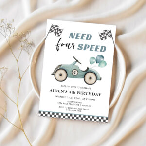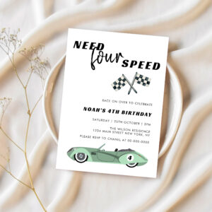 Need Four Speed Green Race Car 4th Birthday Invitation