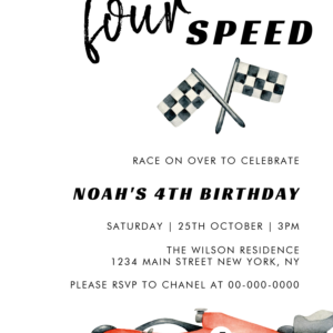 Need Four Speed Red Race Car 4th Birthday Invitation