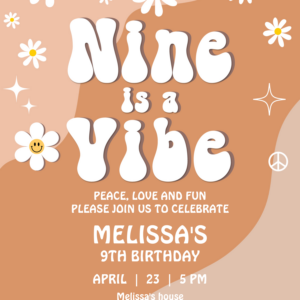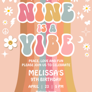 Nine Is A Vibe Groovy Retro 70S 9th Birthday Invitation