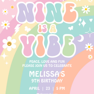 Nine Is A Vibe Rainbow Groovy 9th Birthday Invitation