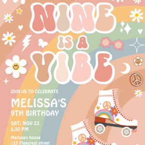 Nine Is A Vibe Groovy Roller Skate 9th Birthday Invitation
