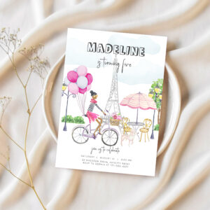 Parisian Girl With Cute Paris Scene Birthday Invitation
