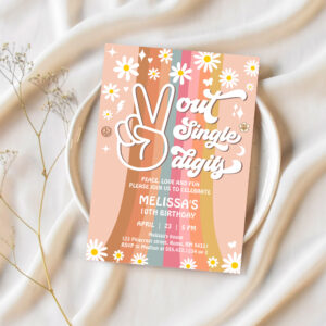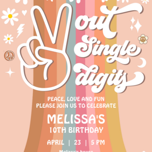 Peace Out Single Digits Groovy 10th Birthday Invitation