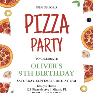 Pizza Party Slice Of Fun Pizza Party Birthday Invitation