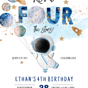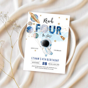 Reach Four The Stars Outer Space Balloon Birthday Invitation