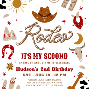 Red Brown Cowboy My 2nd Rodeo Birthday Invitation