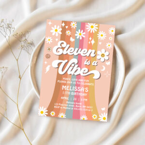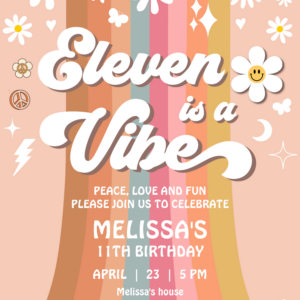 Retro Eleven Is A Vibe Groovy 11th Birthday Invitation