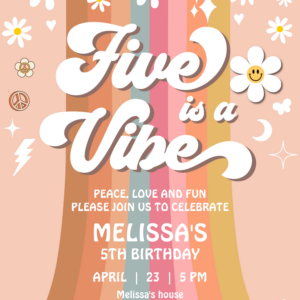 Retro Five Is A Vibe Rainbow Groovy 5th Birthday Invitation