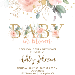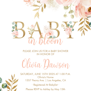 Blush Floral Baby In Bloom Spring Baby Shower Invitation