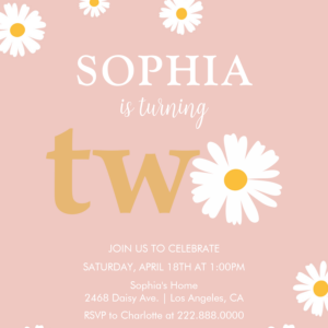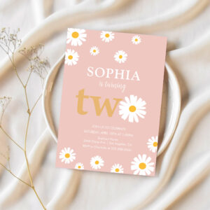 Boho Bohemian Retro 70S Pink Daisy 2nd Birthday Invitation