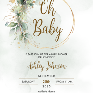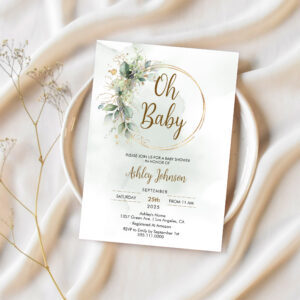 Boho Floral Oh Baby Green And Gold Baby Shower Invitation
