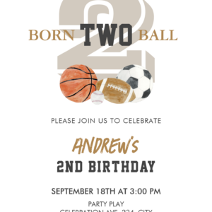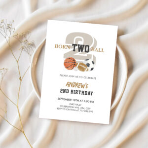 Born Two Ball Birthday Boy 2nd Birthday Invitation