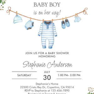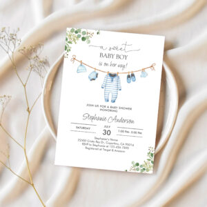 Boy Clothes Laundry Blue Greenery Baby Shower Invitation