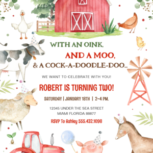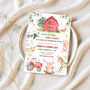 Boy Farm Animals Boy Barnyard Birthday Party Invitation