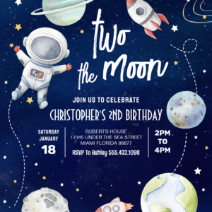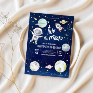 Two The Moon Outer Space Galaxy 2nd Birthday Invitation