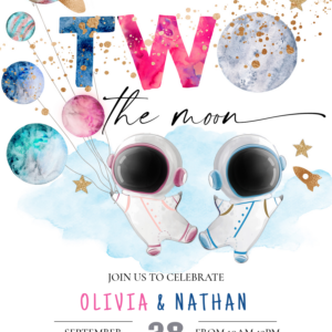 Two The Moon Twins Dual Sibling Astronaut Birthday Invitation