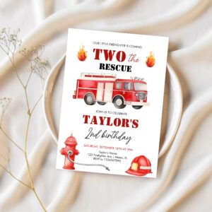 Two The Rescue Firetruck Boys 2nd Birthday Invitation