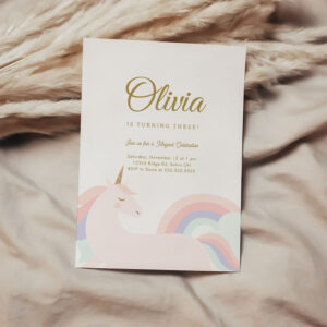 Unicorn And Rainbow Pastel Unicorn Birthday Invitation
