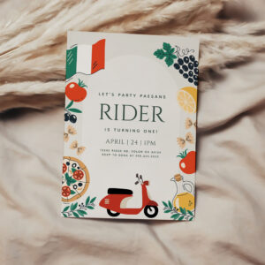 Uno Vespa Italian Themed Birthday Party Invitation