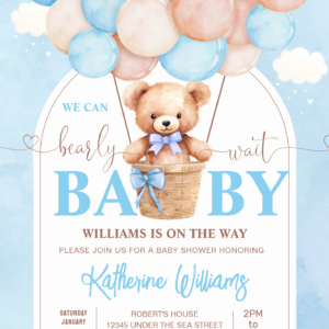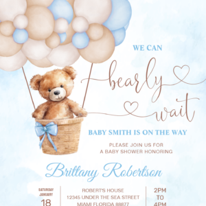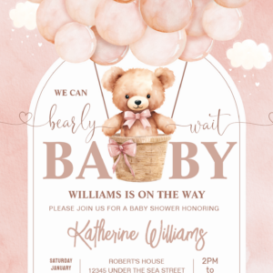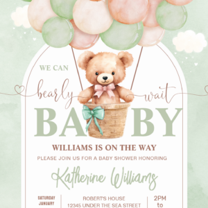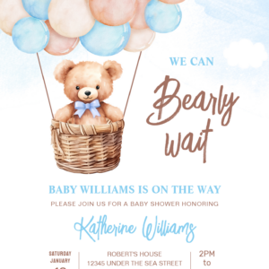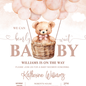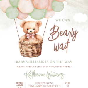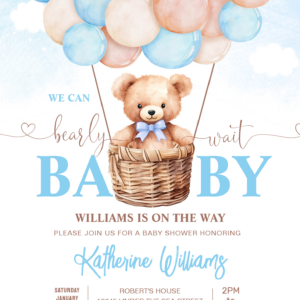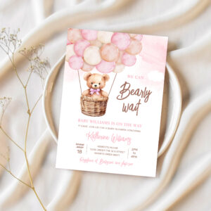 We Can Bearly Wait Teddy Bear Baby Shower Invitation