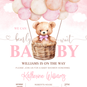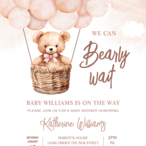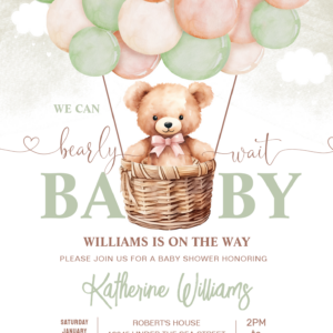 We Can Bearly Wait Teddy Bear Baby Shower Invitation
