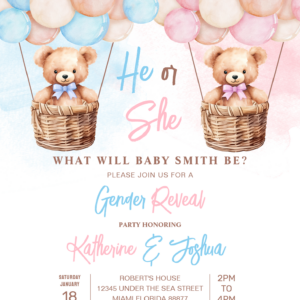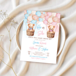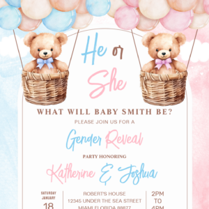 We Can Bearly Wait Teddy Bear Gender Reveal Invitation