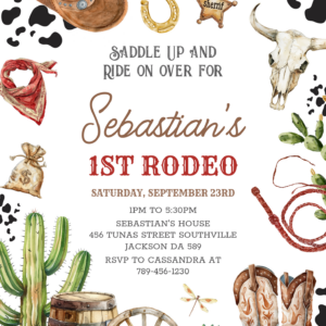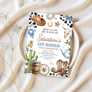 Wild West Cowboy 1st Rodeo Birthday Invitation