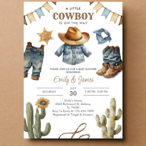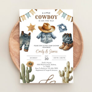 A Little Cowboy Is On The Way Western Baby Shower Invitation
