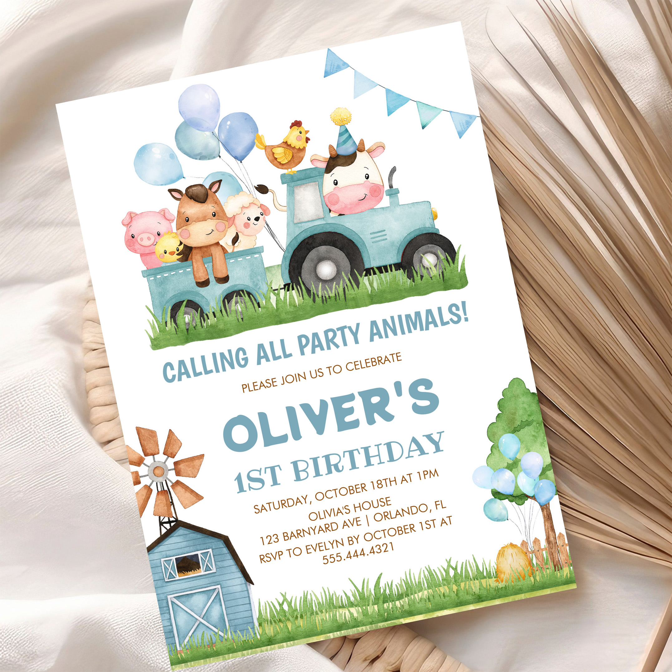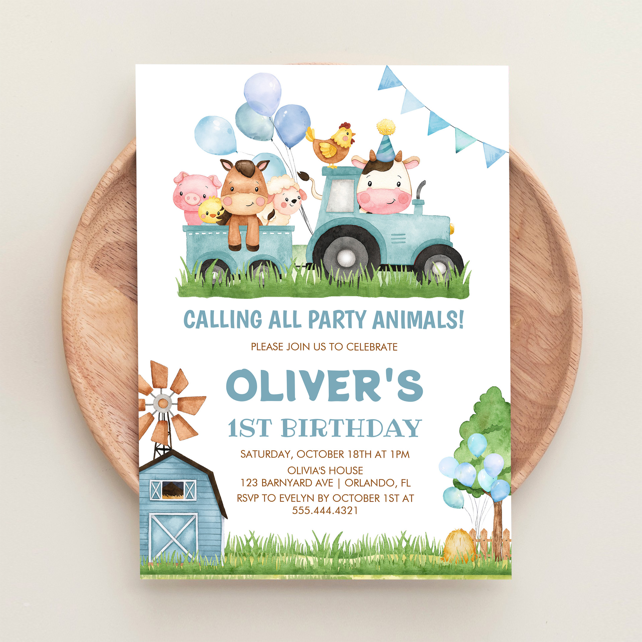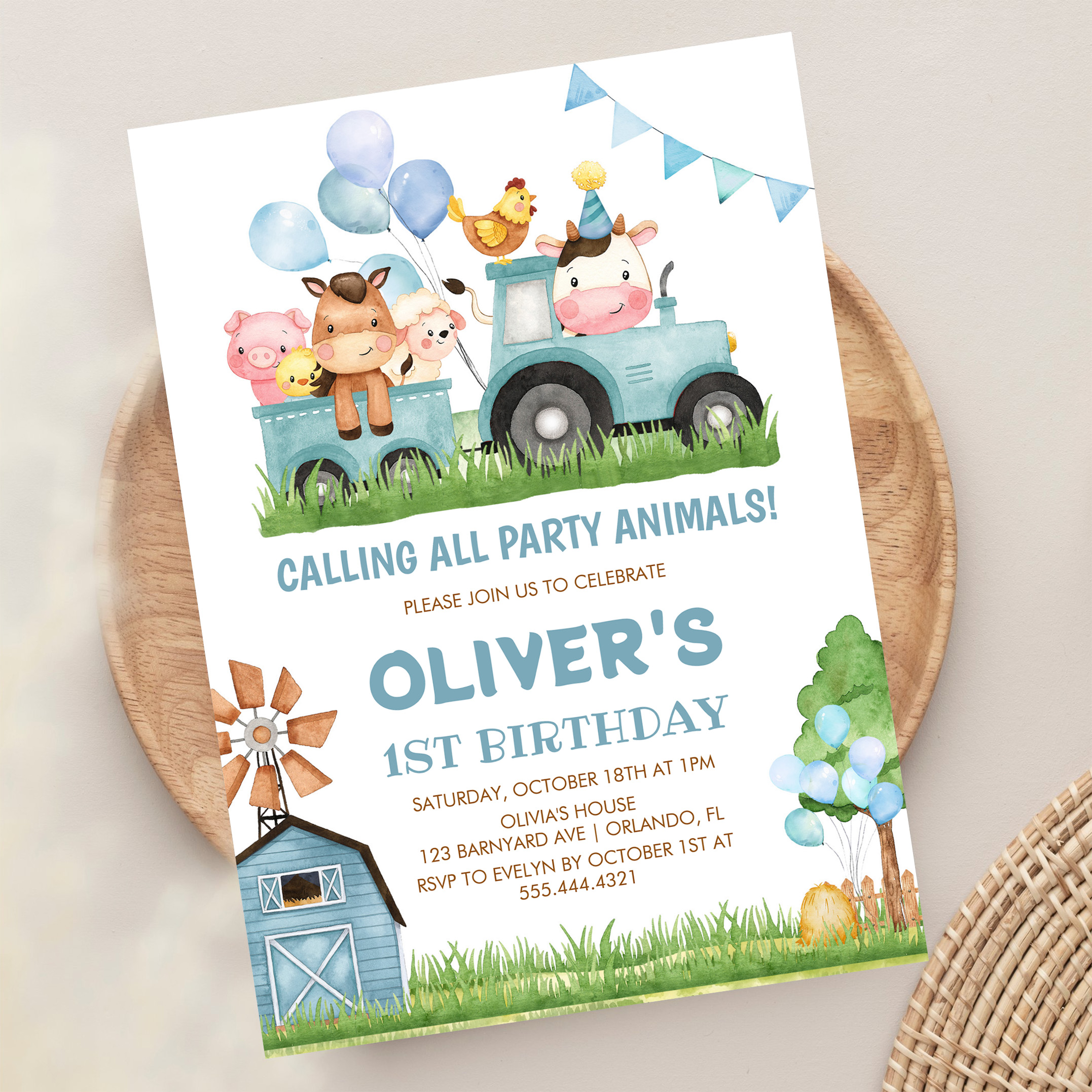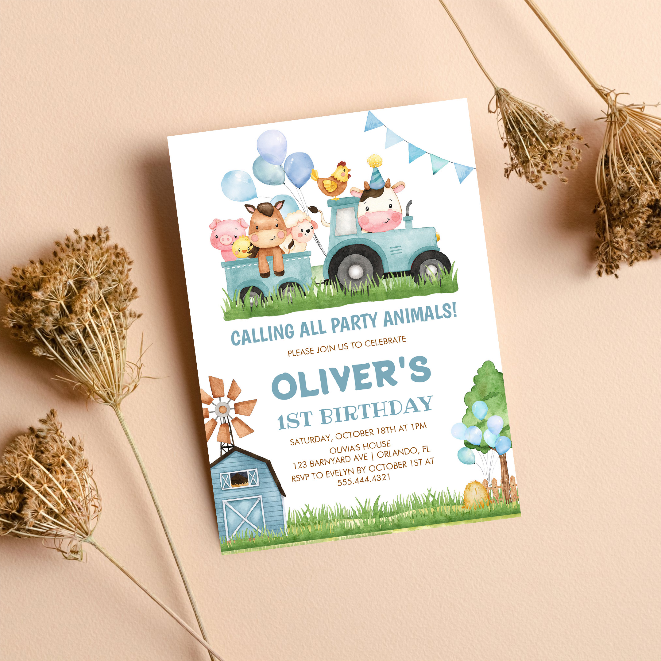 Barn Animals Barnyard Ranch Boys 1st Birthday Invitation