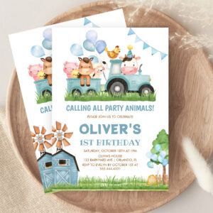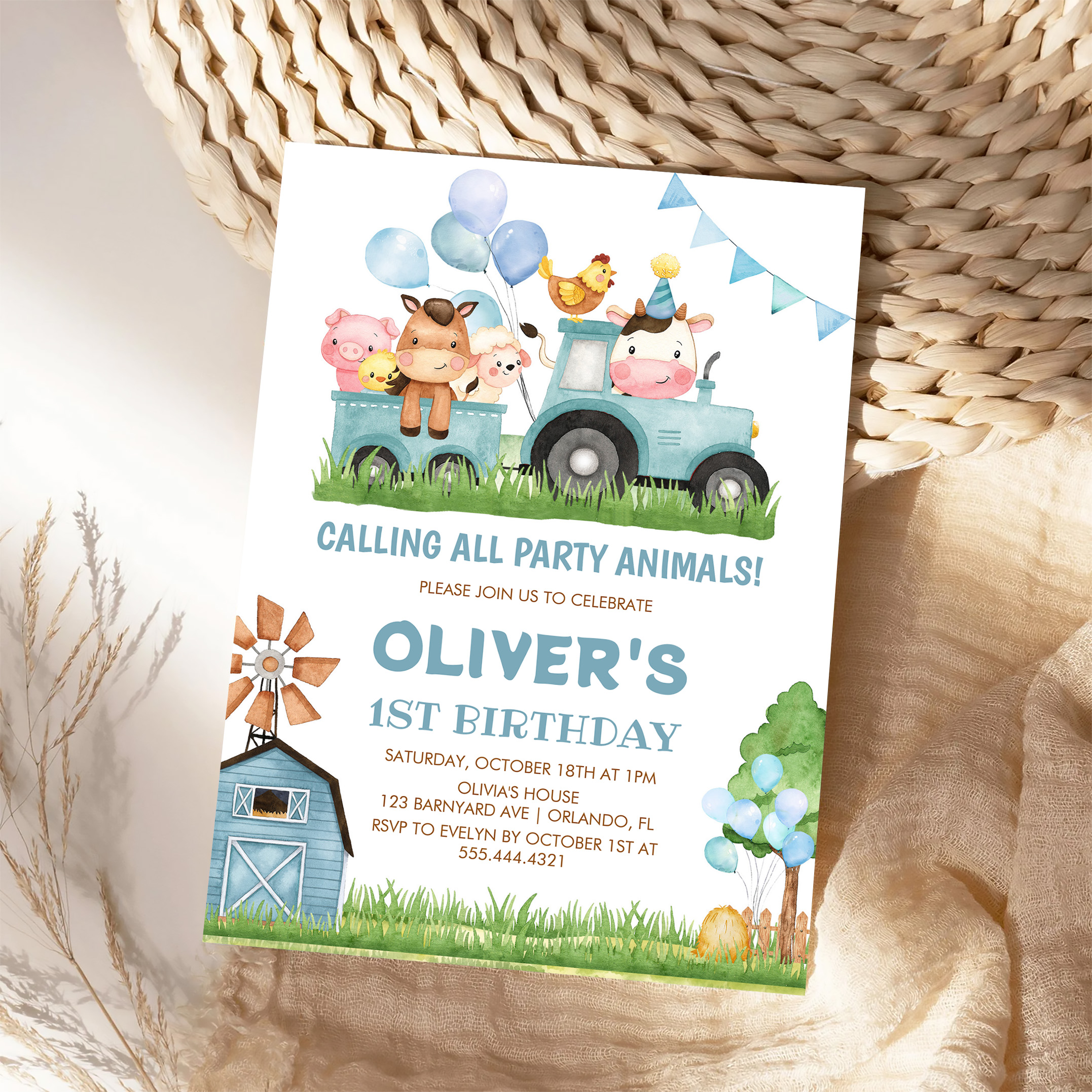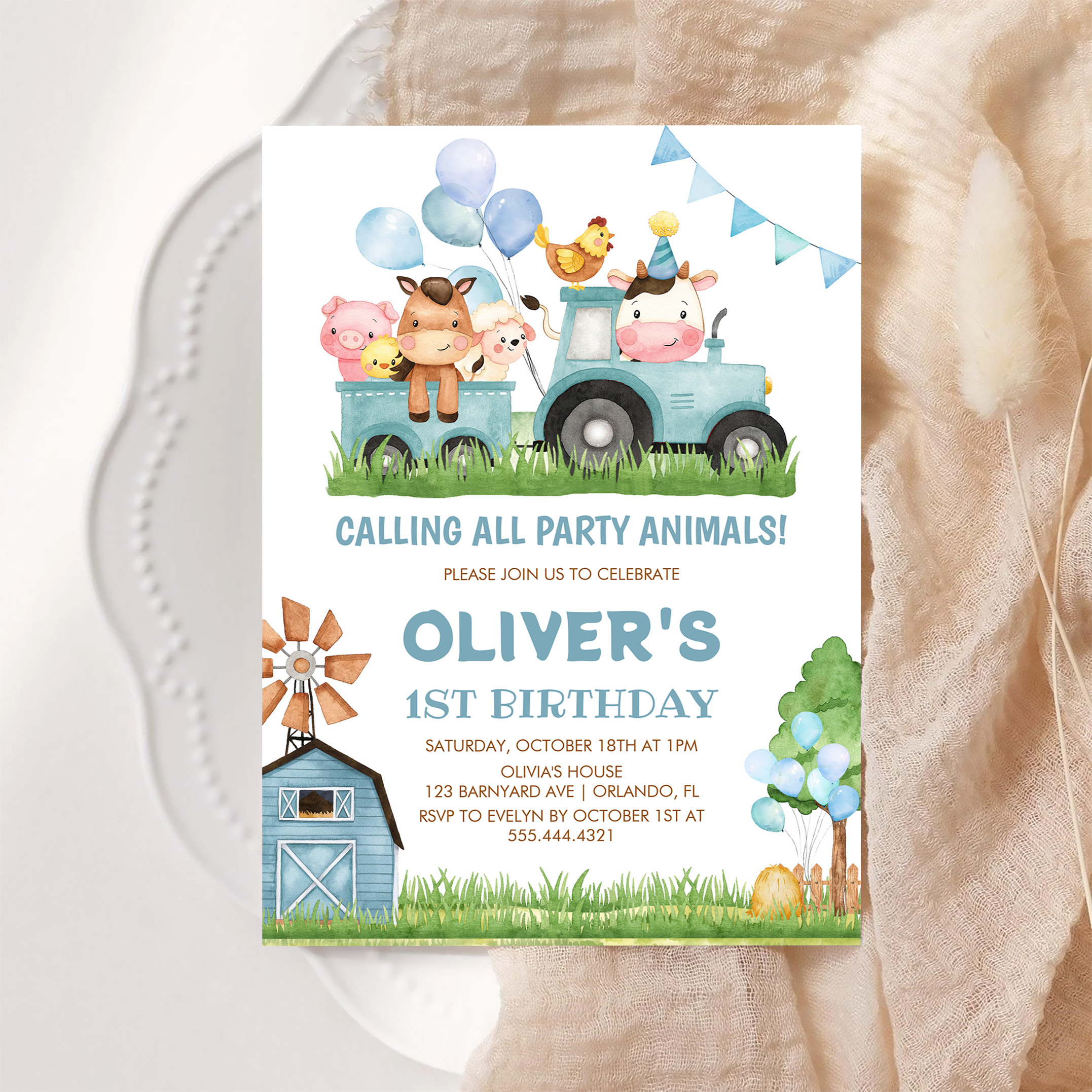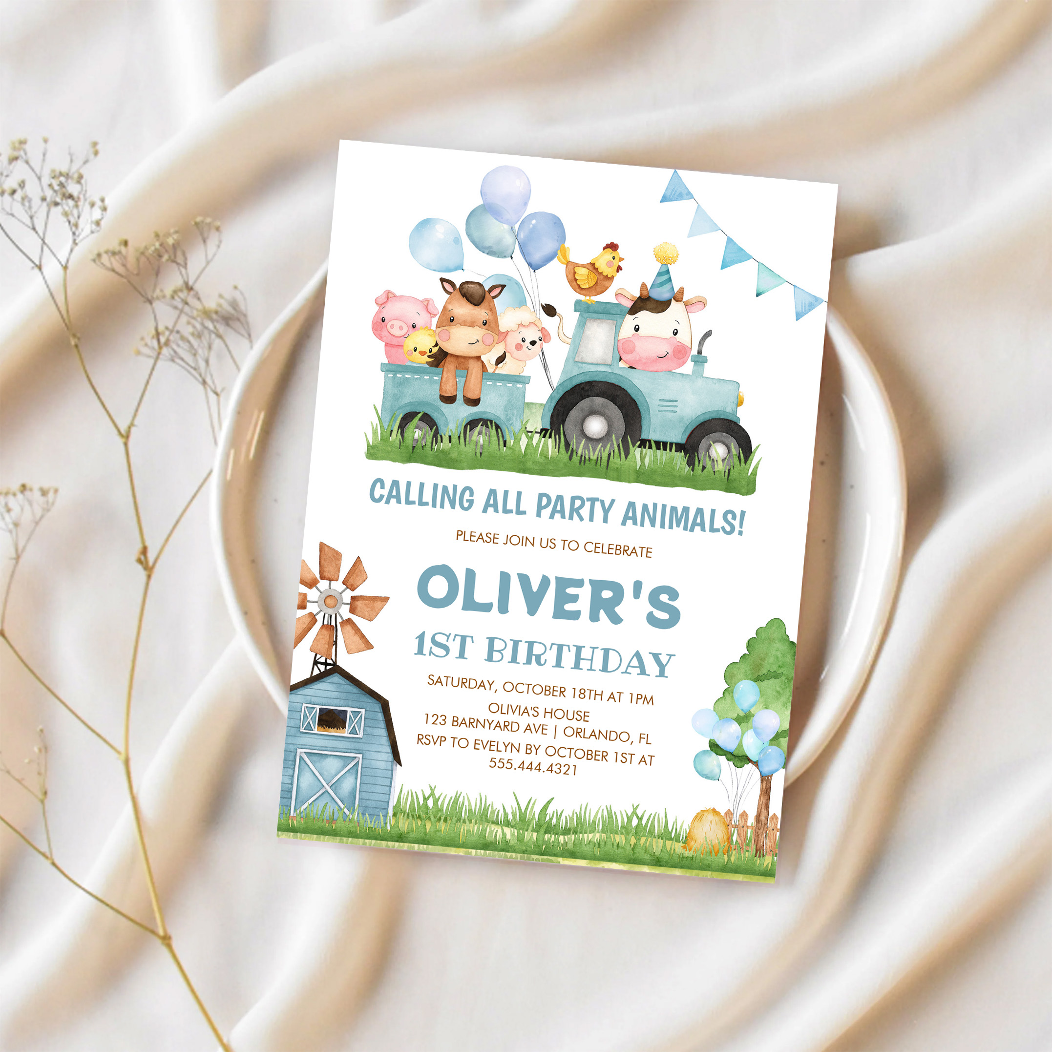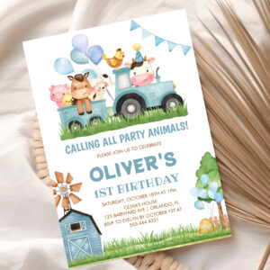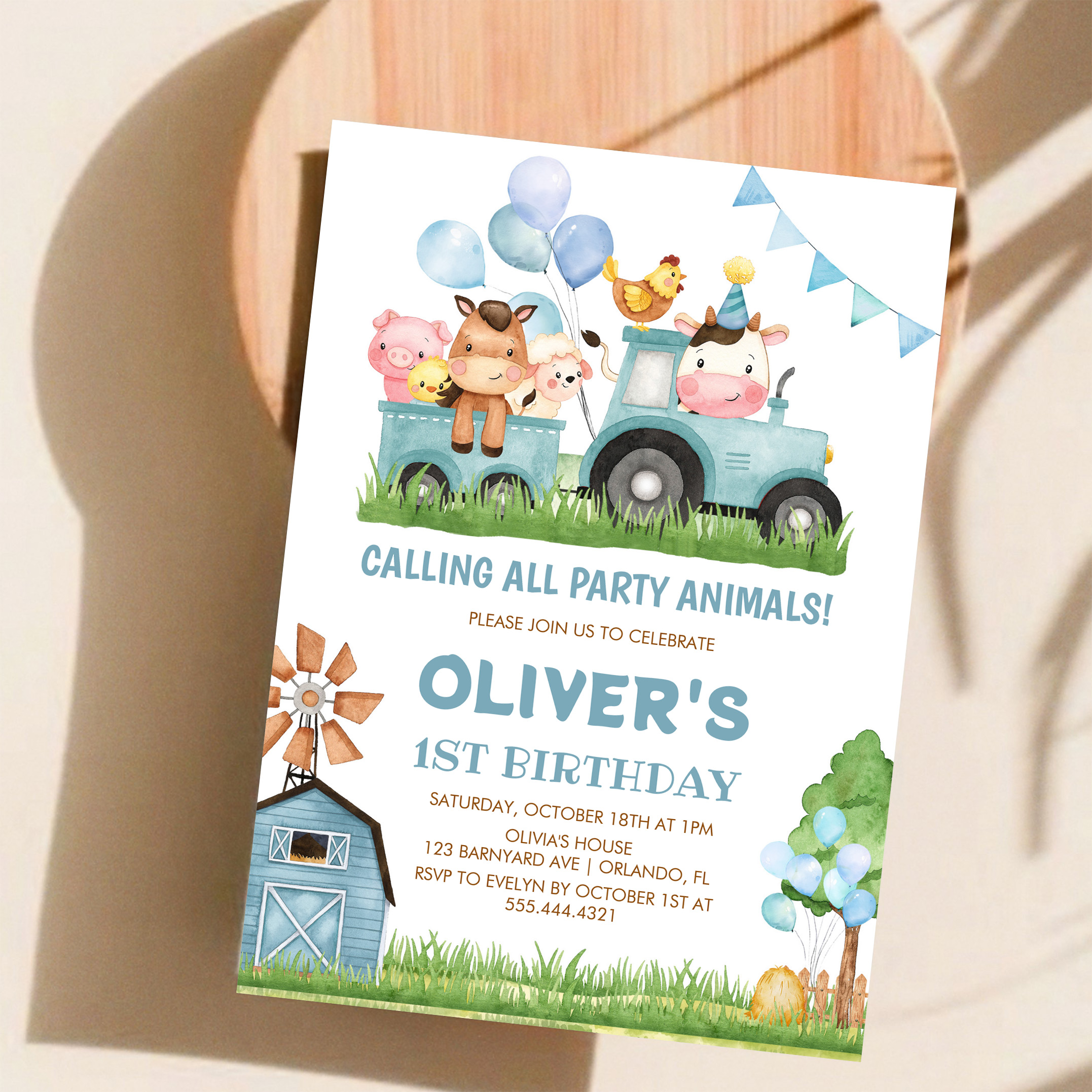 Barn Animals Barnyard Ranch Boys 1st Birthday Invitation