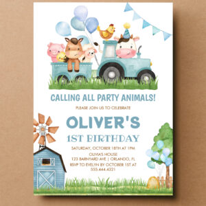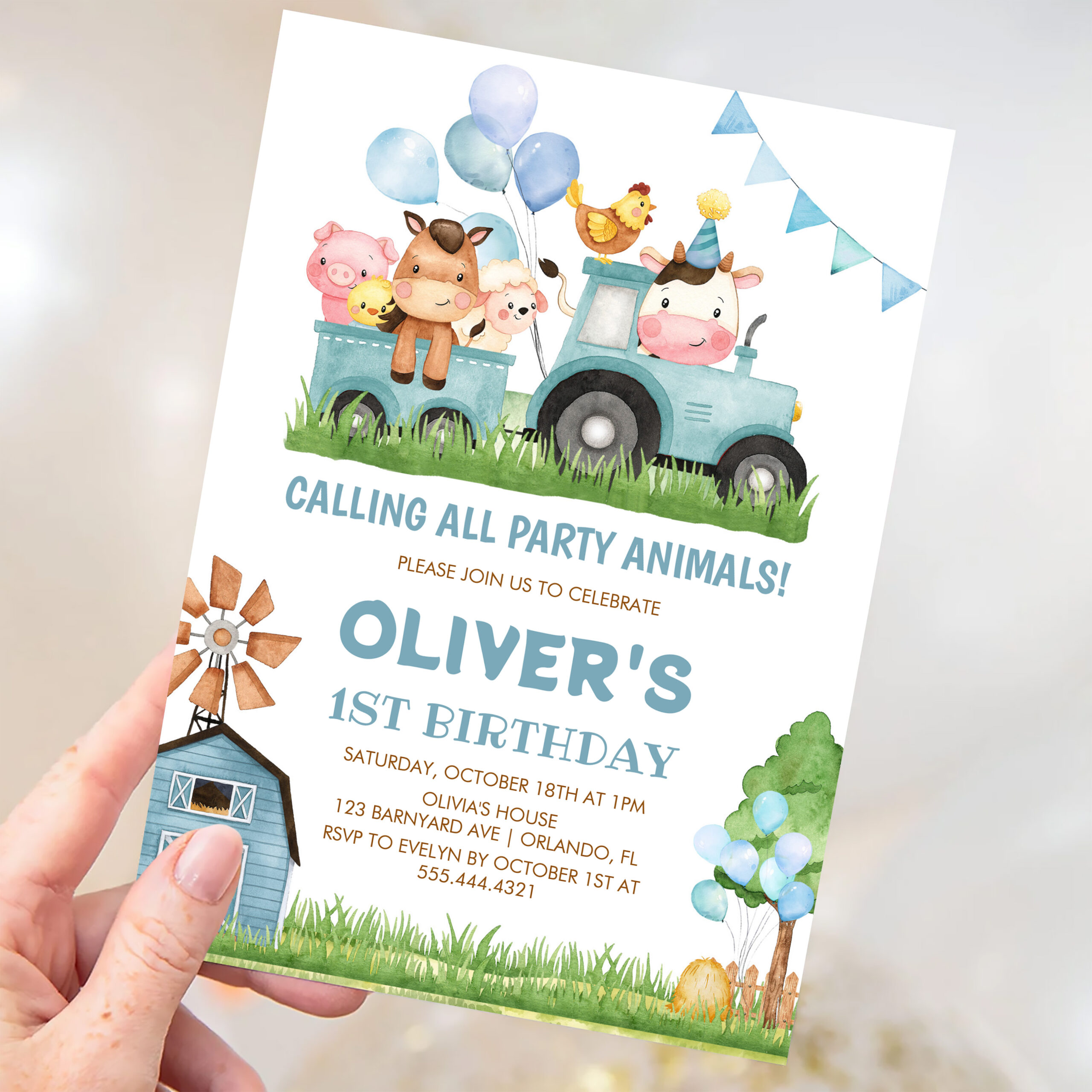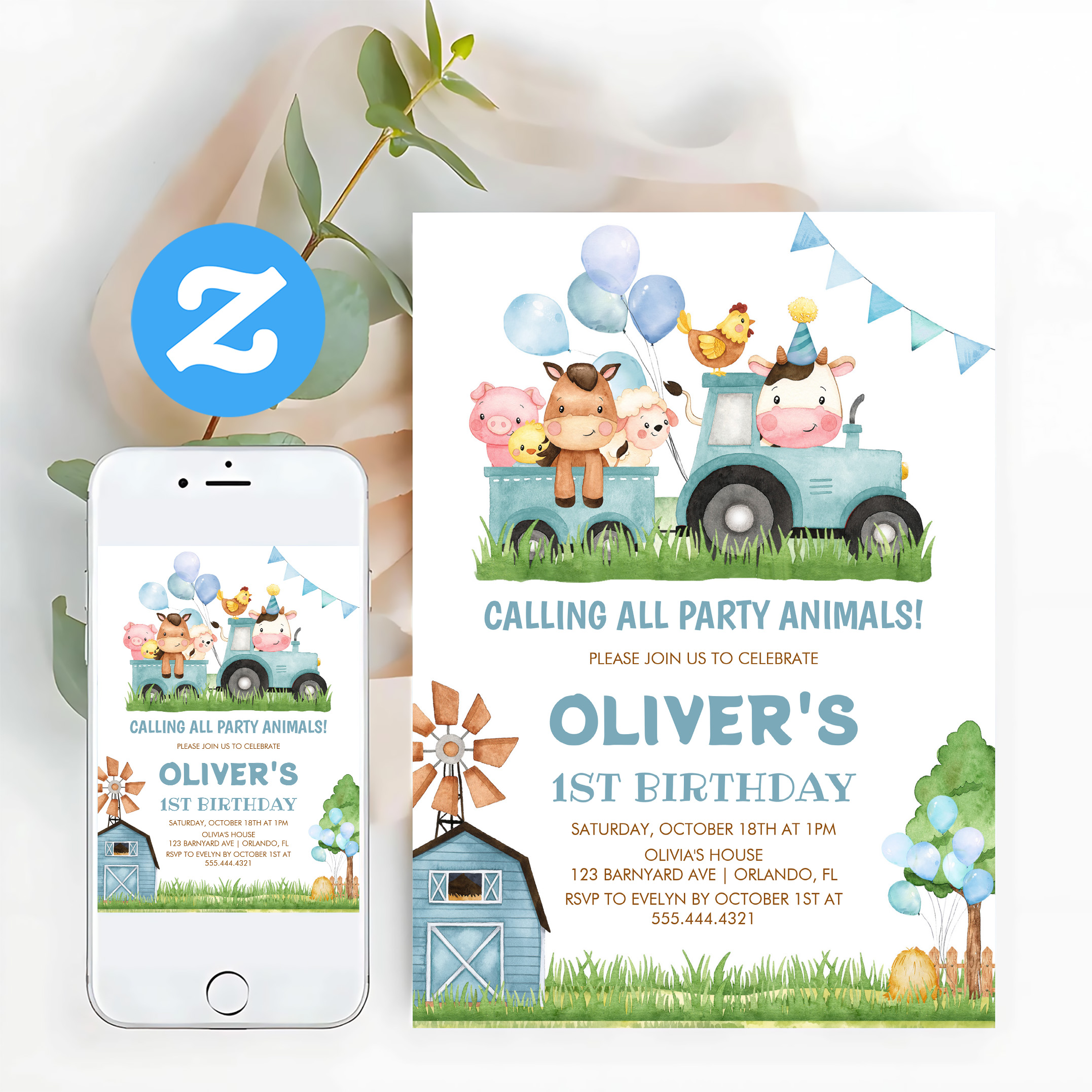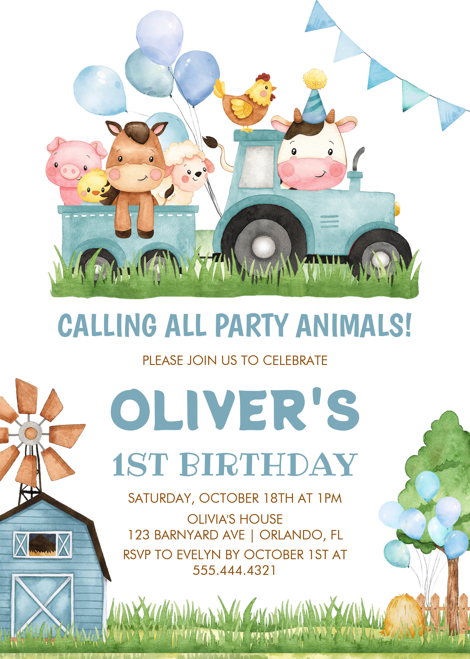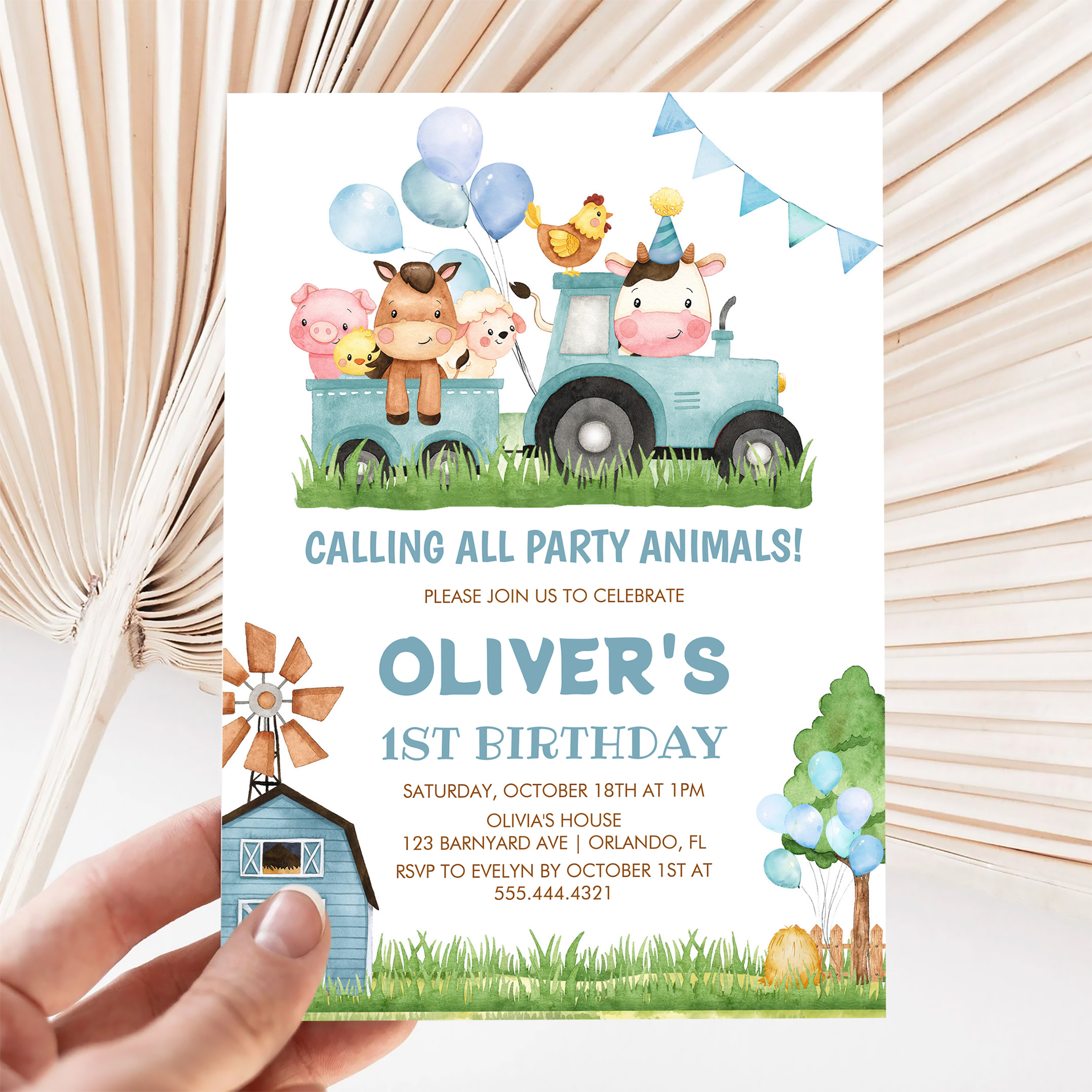 Barn Animals Barnyard Ranch Boys 1st Birthday Invitation