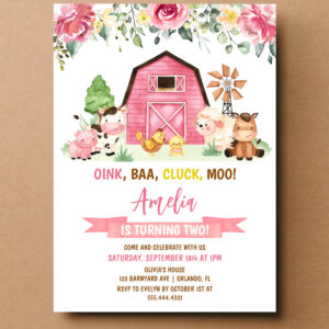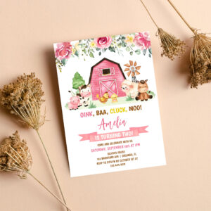Barnyard Farm Animals Ranch Second Birthday Invitation