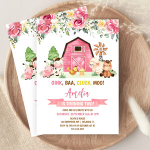 Barnyard Farm Animals Ranch Second Birthday Invitation - Related products