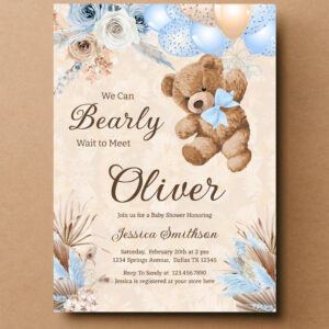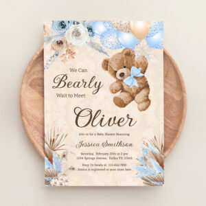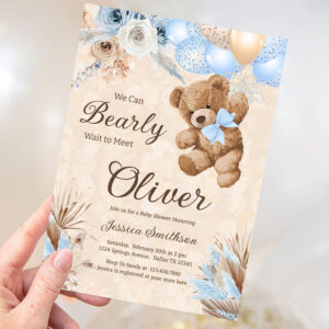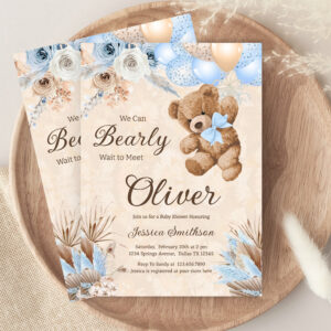 Blue Pampas Grass We Can Bearly Wait Baby Shower Invitation - Related products