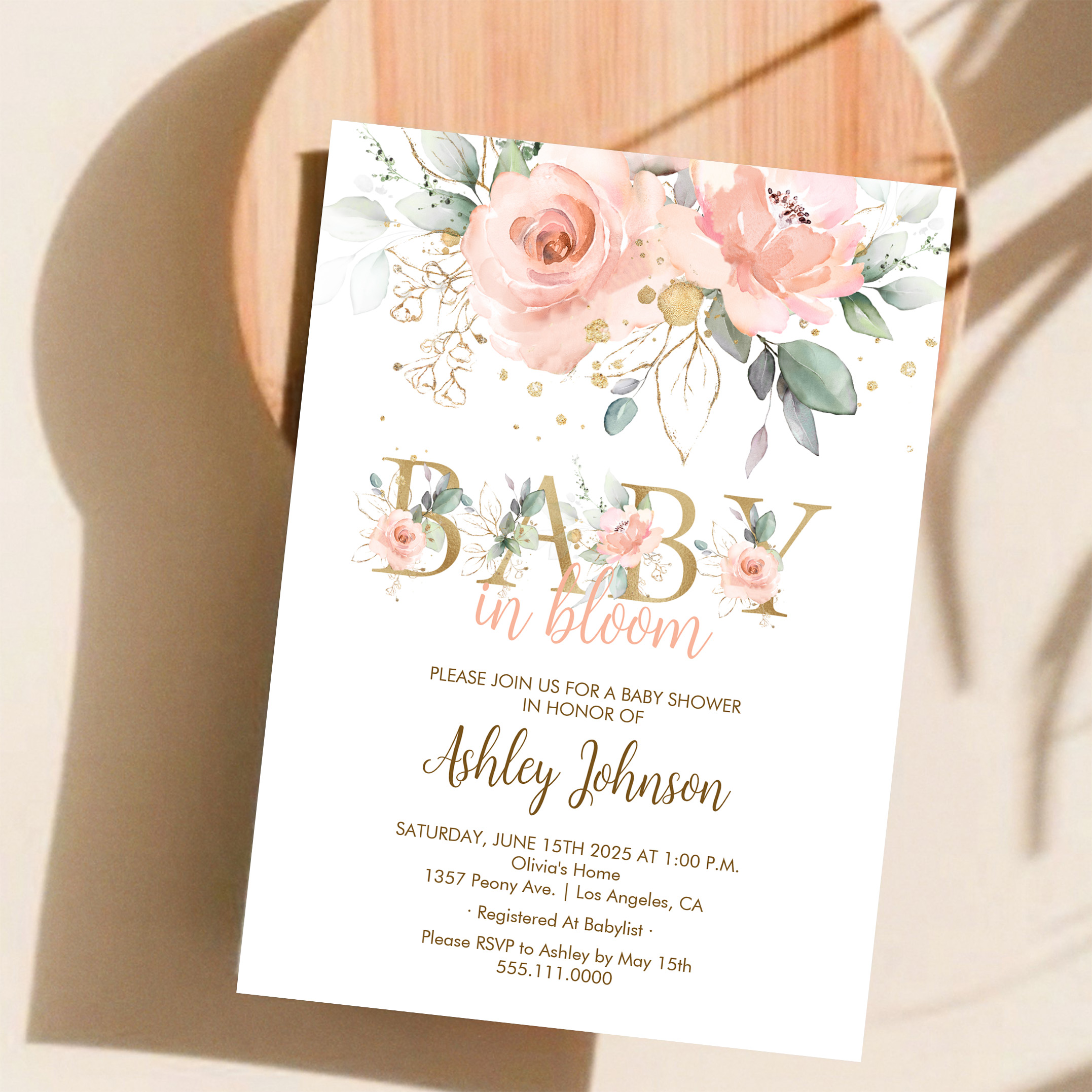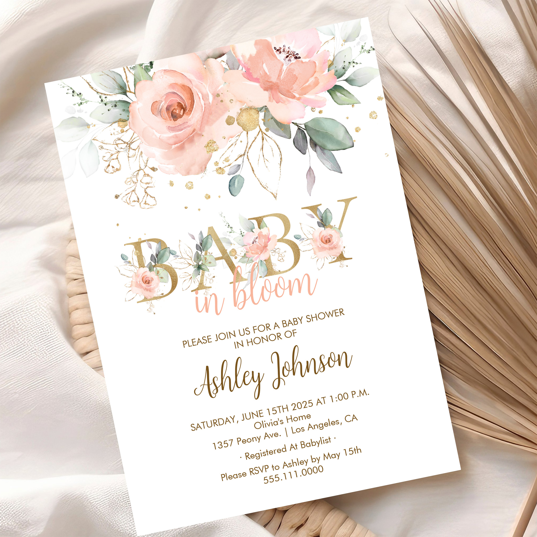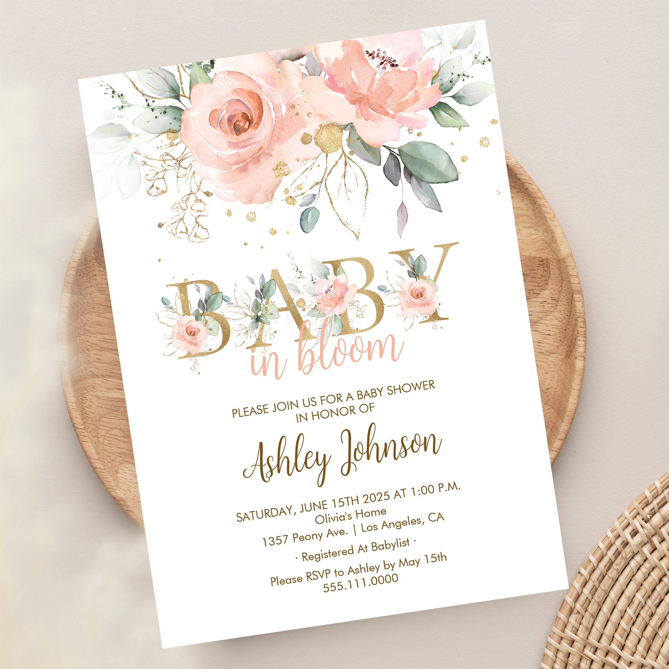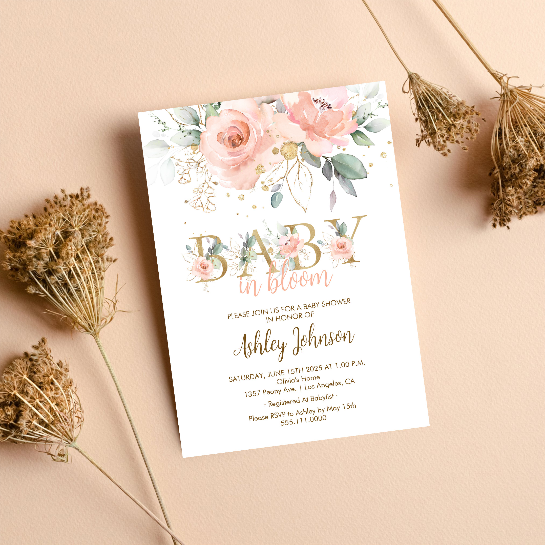 Blush Floral Baby In Bloom Spring Baby Shower Invitation