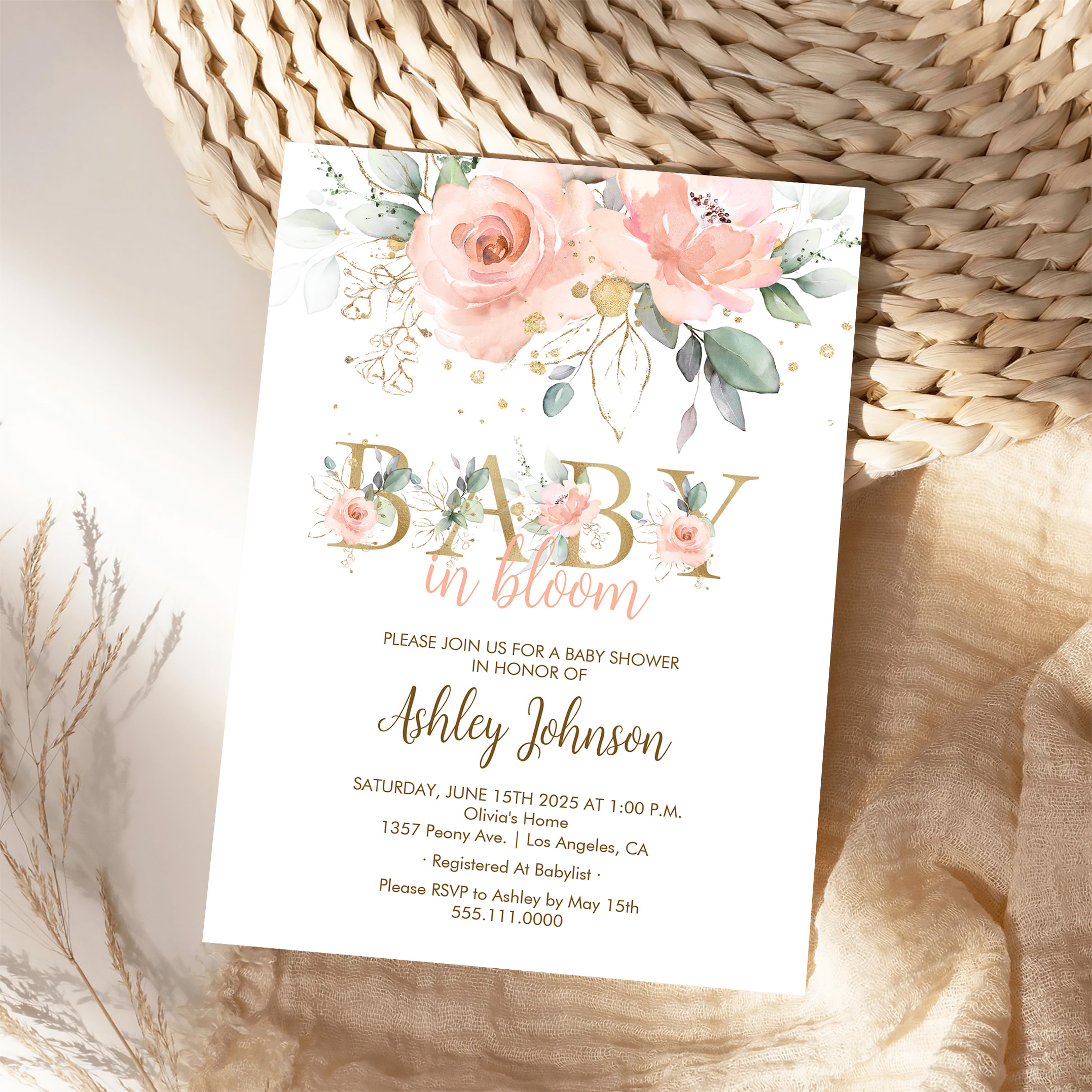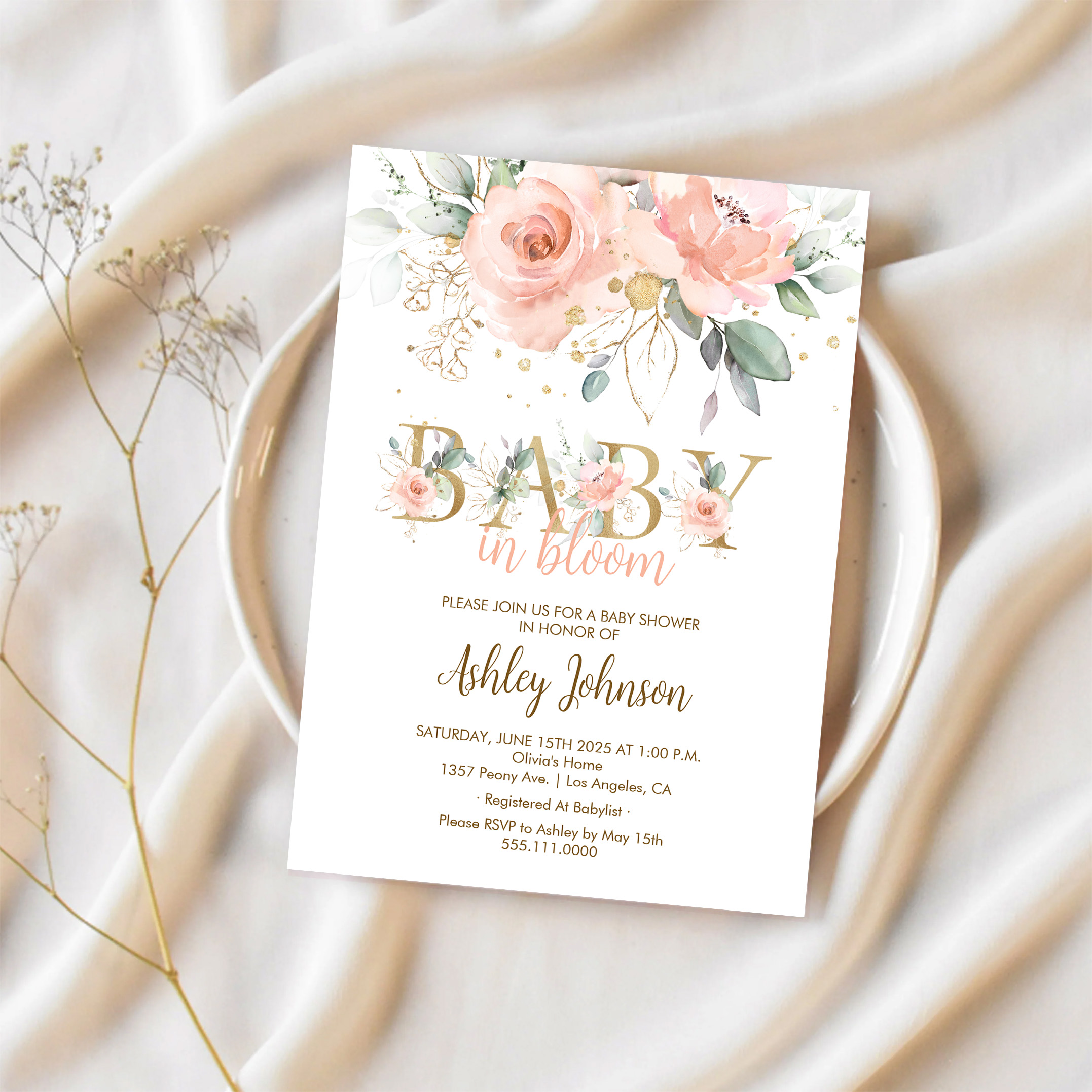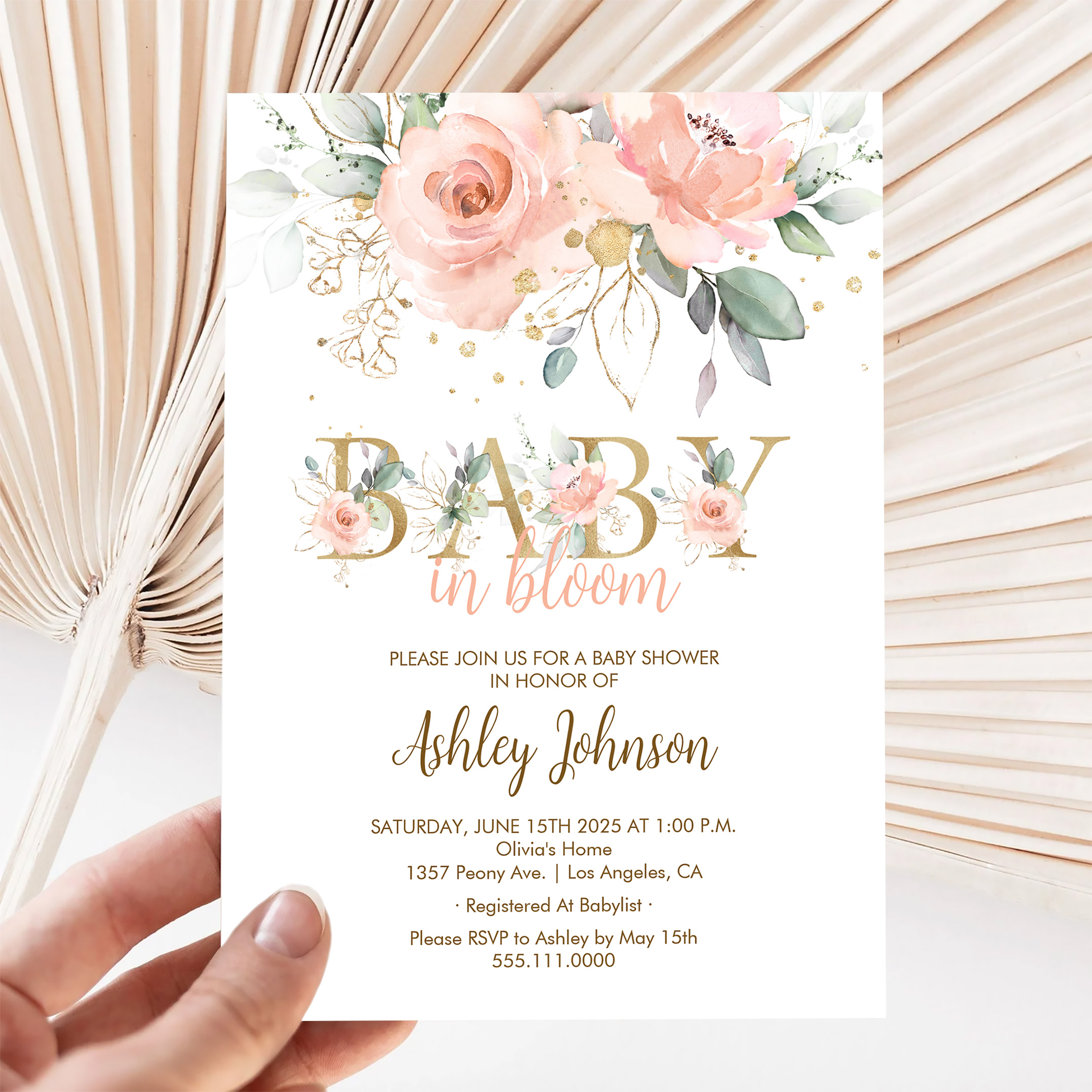 Blush Floral Baby In Bloom Spring Baby Shower Invitation