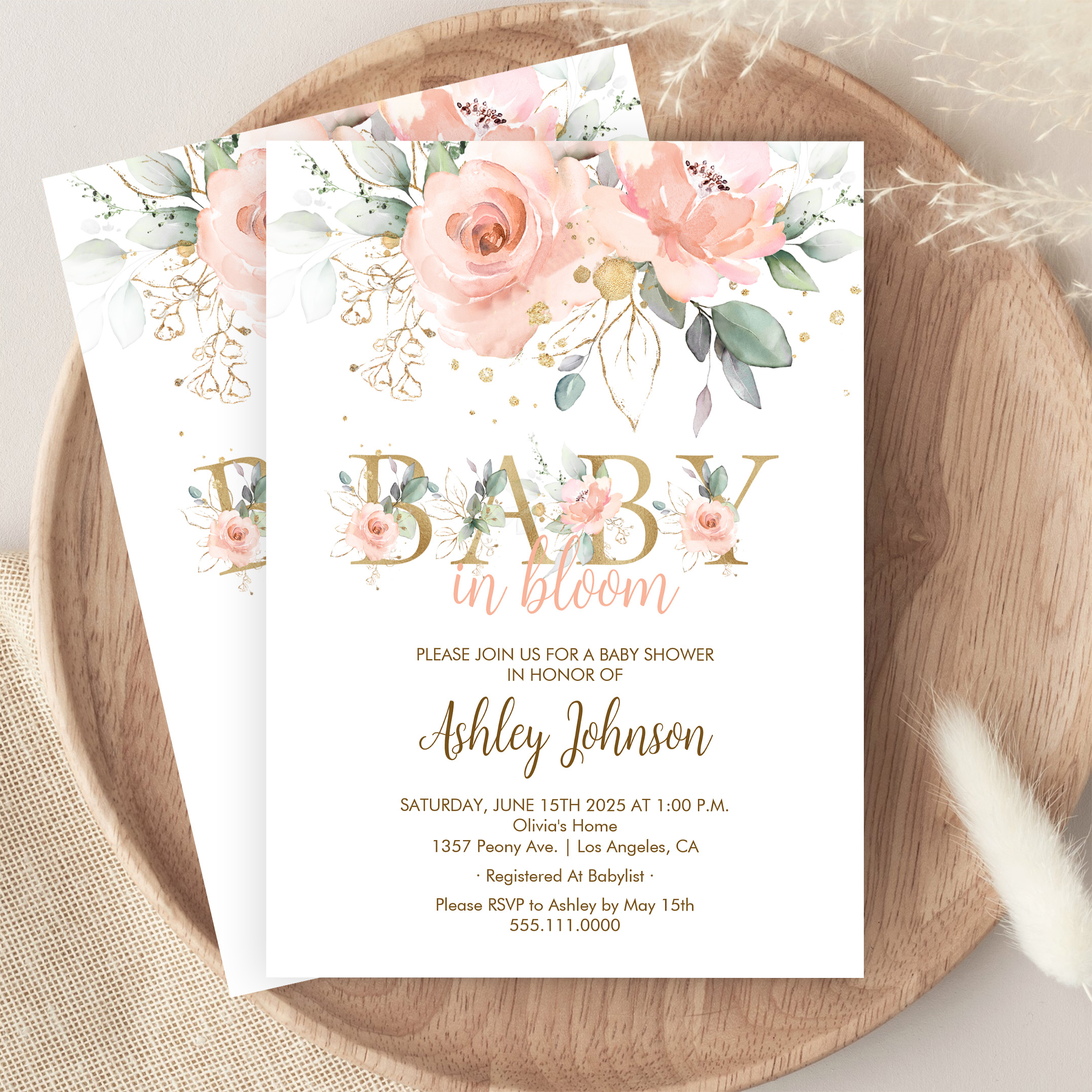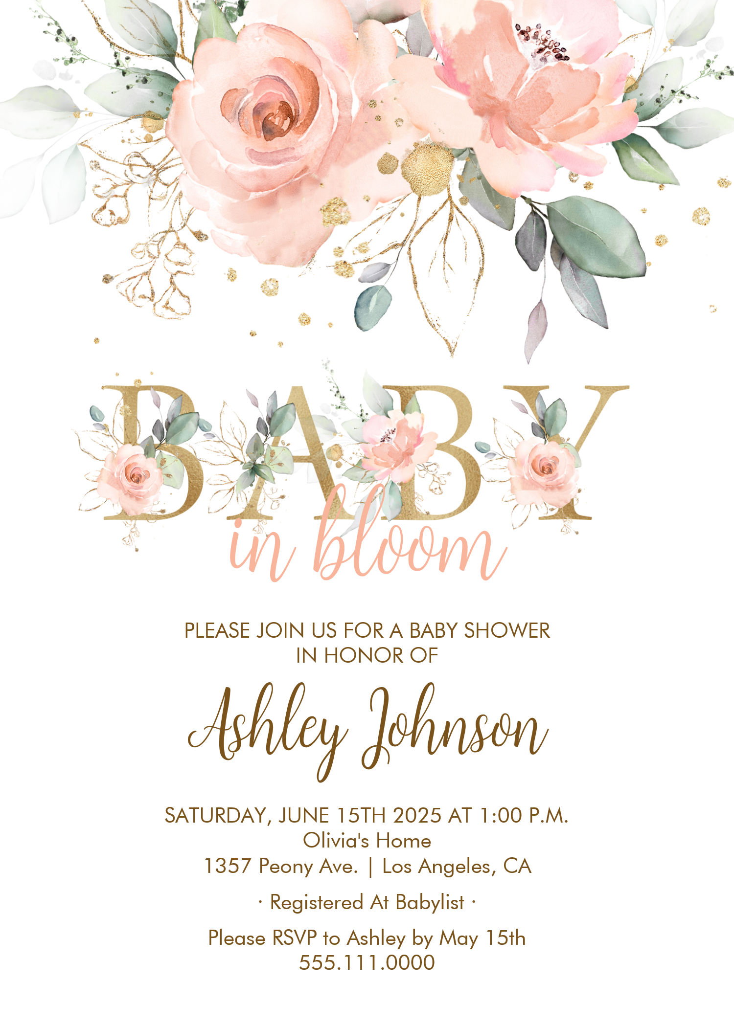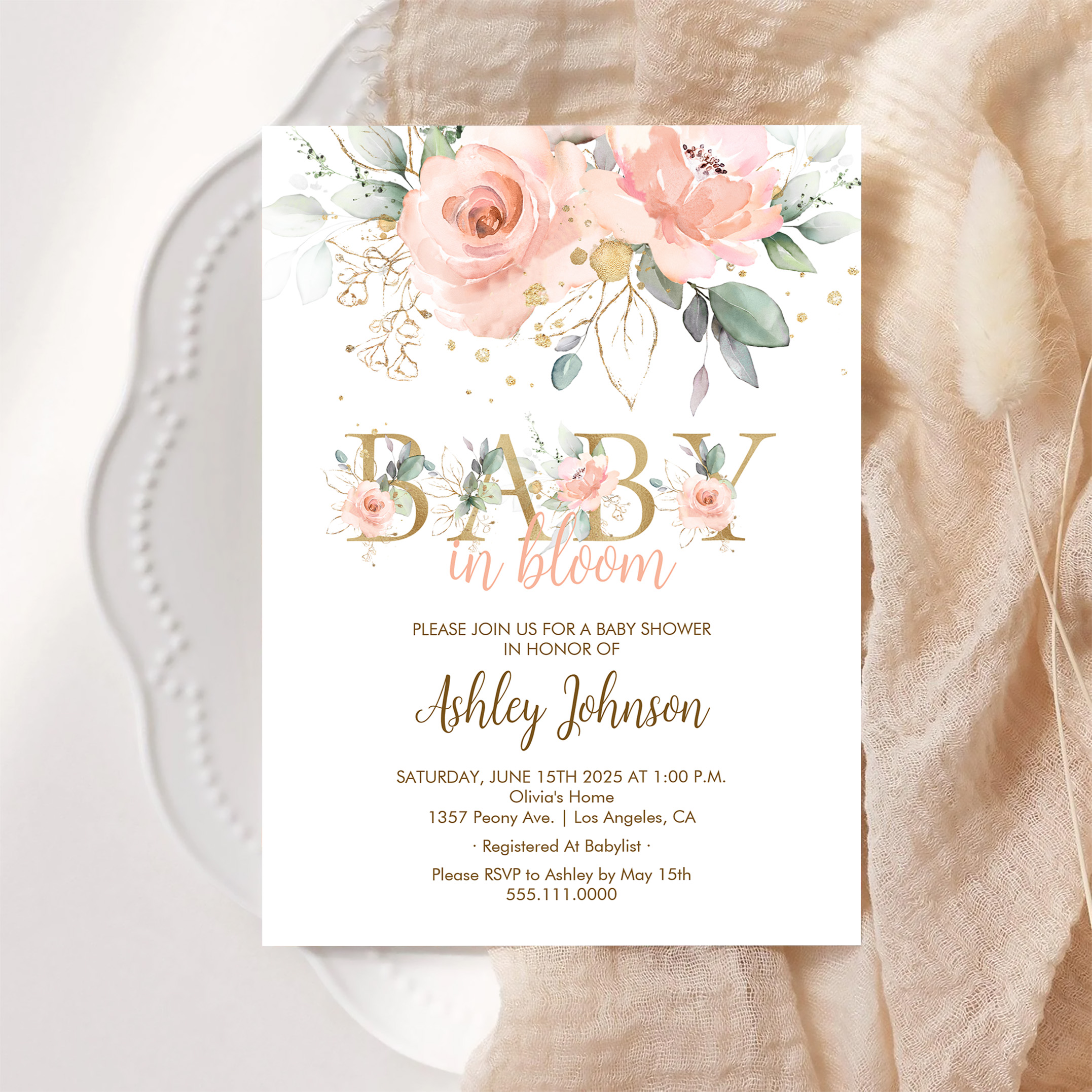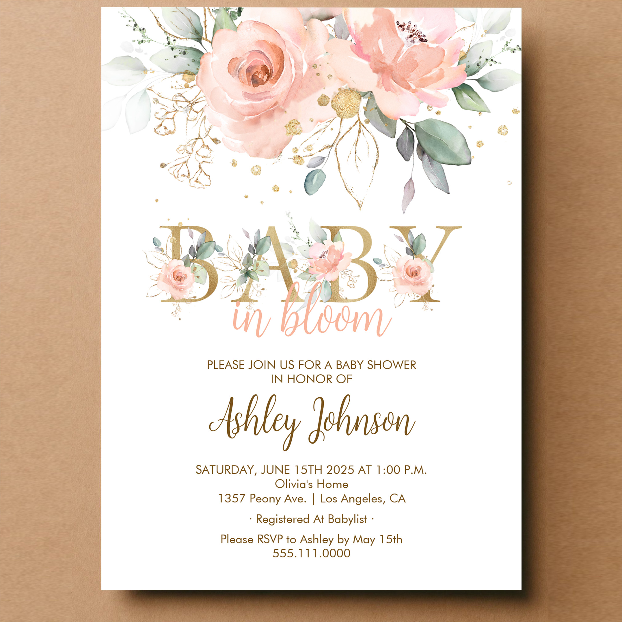 Blush Floral Baby In Bloom Spring Baby Shower Invitation